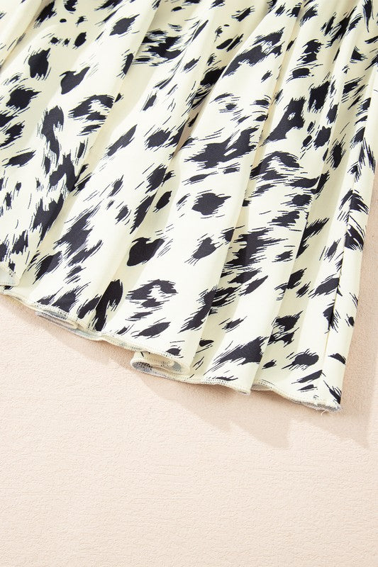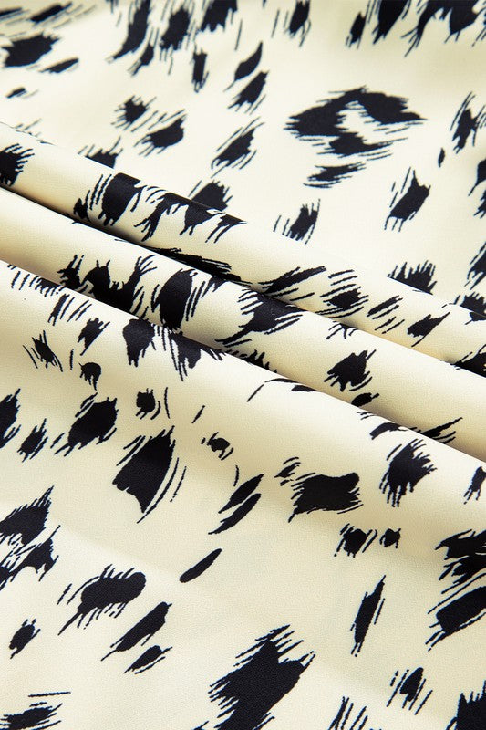 This playful mini dress features a high neckline and a flared silhouette with long sleeves. it showcases an eye-catching patchwork and abstract colorblock design in beige. The high waist and belted detail add a fun, flattering touch—perfect for your daily adventures!